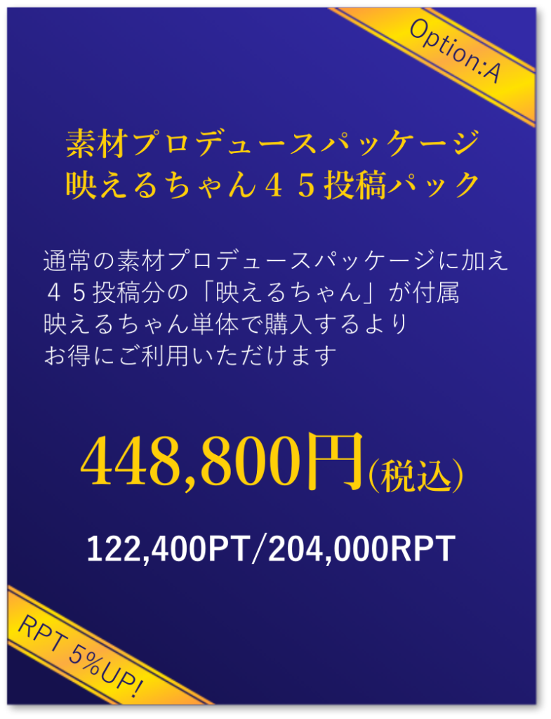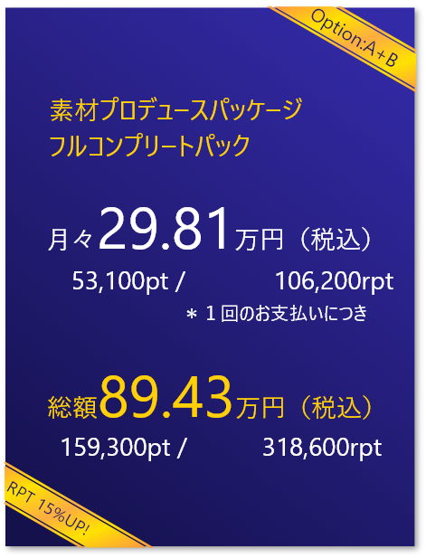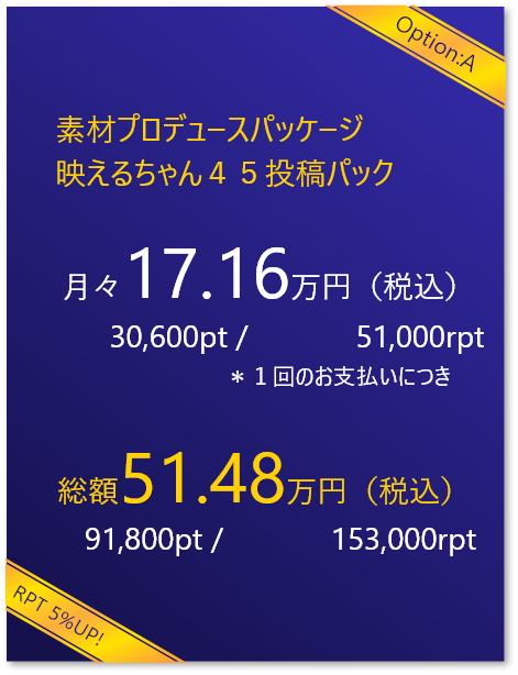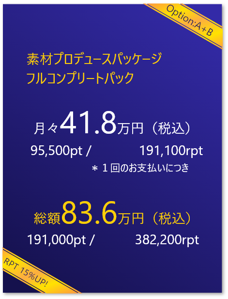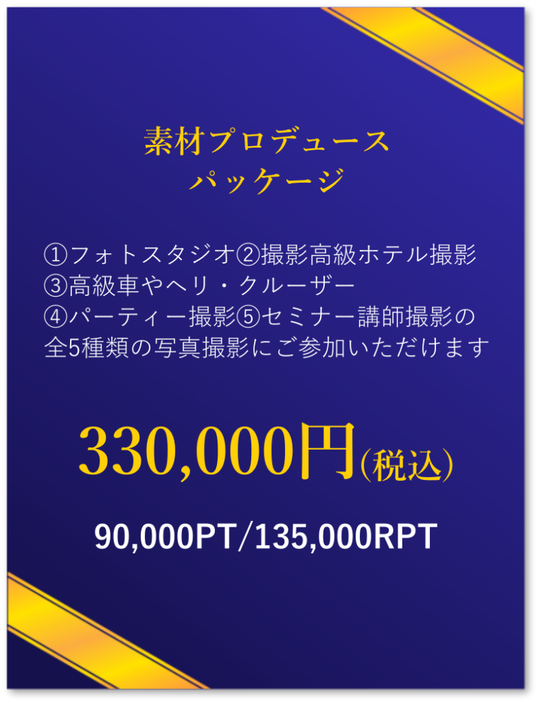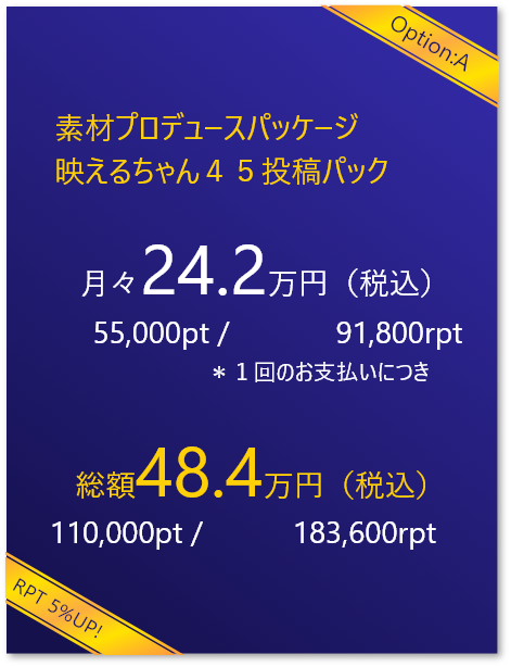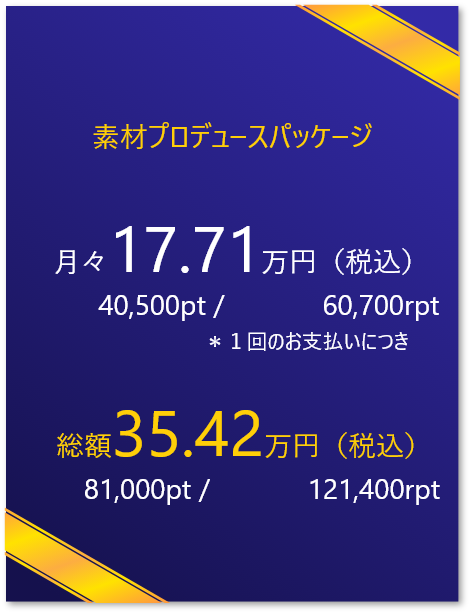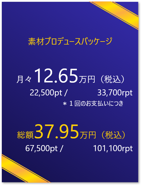 素材プロデュースパッケージでは圧倒的な素材が撮影できる場を提供します。