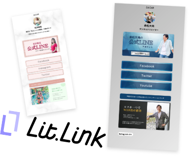 リットリンクとは、Facebook・Instagram・Twitter・LP・ブログ・公式LINEなどの複数のURLをひとまとめにできるサービスです。