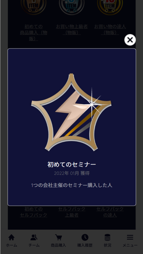カテゴリーごとに条件を達成することで、バッジを獲得できる機能です。