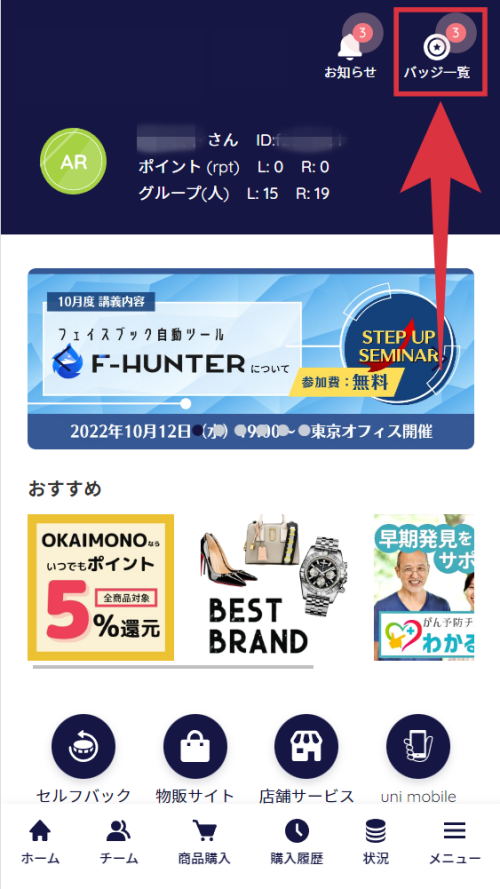 ■ 10月13日(木)以降「ホーム」の右上に「バッジ一覧」のアイコンが追加されます。